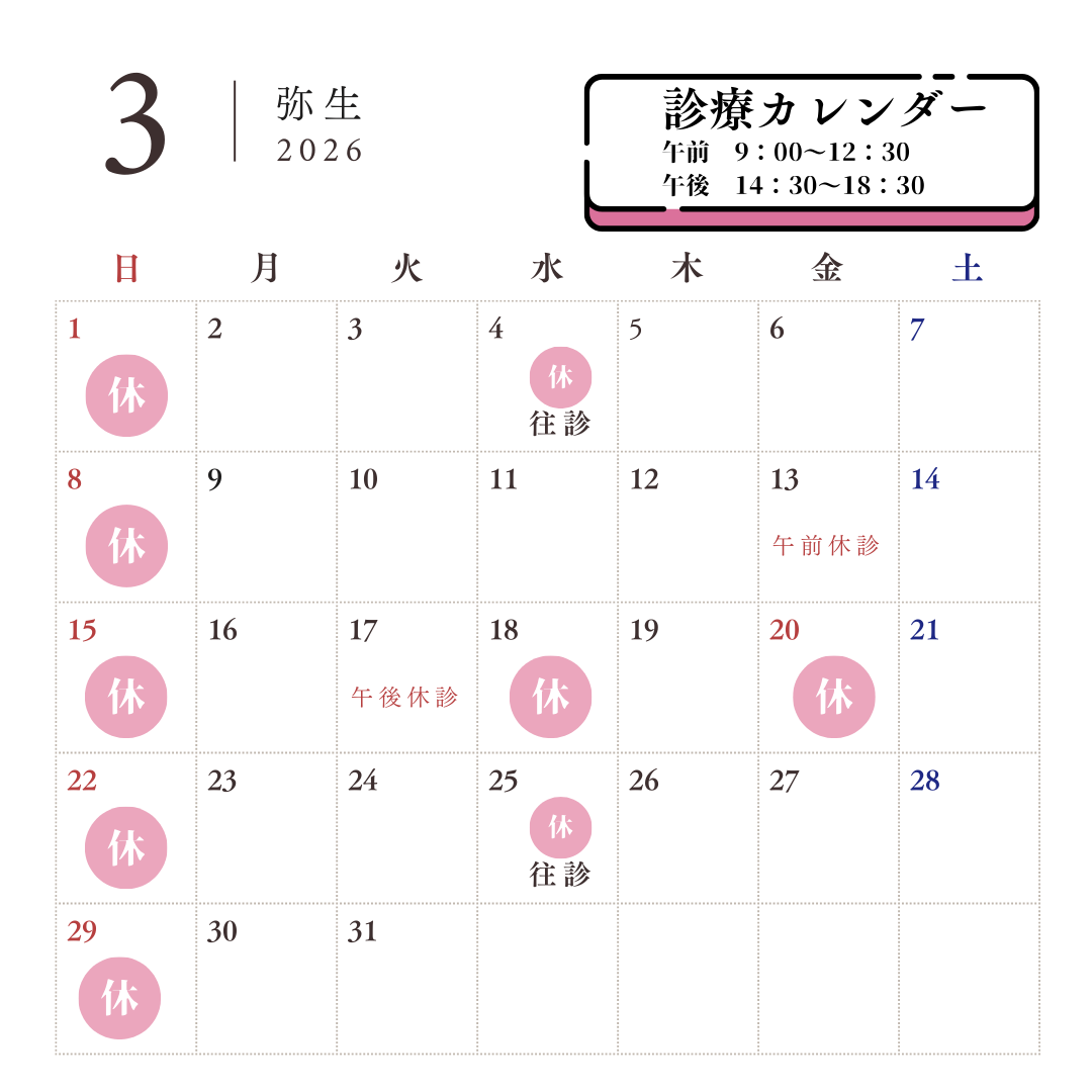 3月の診療予定を更新しました。