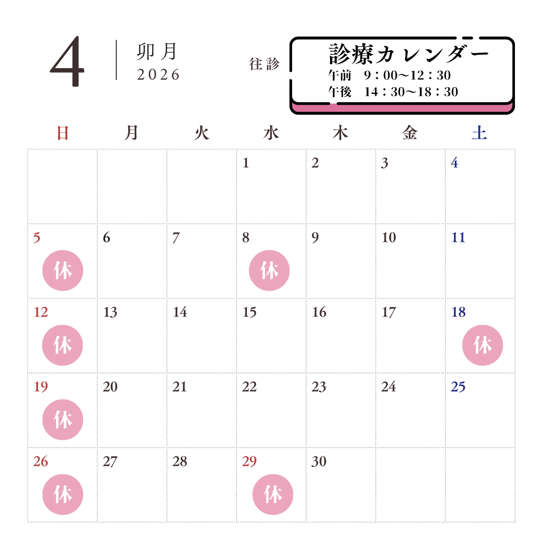 4月の診療予定です。